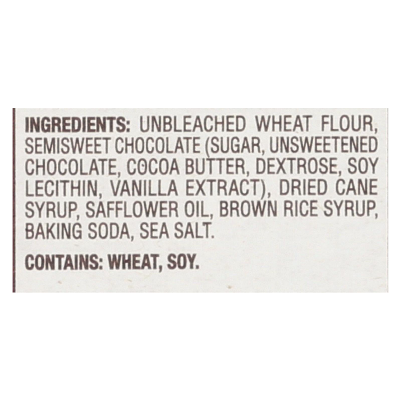 ingredients : unbleached wheat flour;semisweet chocolate;sugar;unsweetened chocolate;cocoa butter;dextrose;soy lecithin;vanilla extract;dried cane syrup;safflower oil;brown rice syrup;baking soda;sea salt