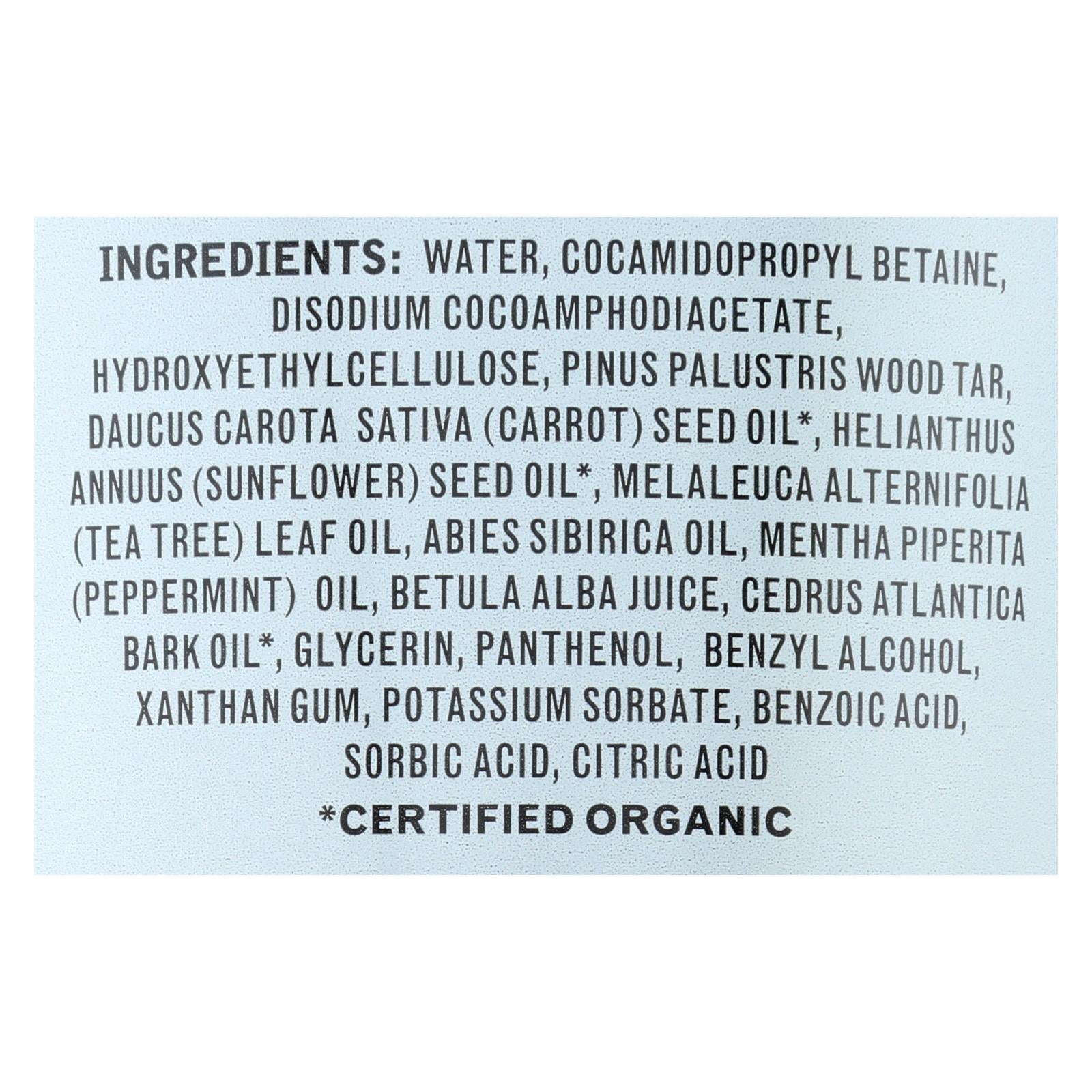 ingredients : water;cocamidopropyl betaine;disodium cocoamphodiacetate;hydroxyethylcellulose;pinus palustris wood tar;daucus carota sativa;carrot;seed oil;helianthus annuus;sunflower;melaleuca alternifolia;tea tree;leaf oil;abies sibirica oil;mentha piperita;peppermint;oil;betula alba juice;cedrus atlantica bark oil;glycerin;panthenol;benzyl alcohol;xanthan gum;potassium sorbate;benzoic acid;sorbic acid;citric acid