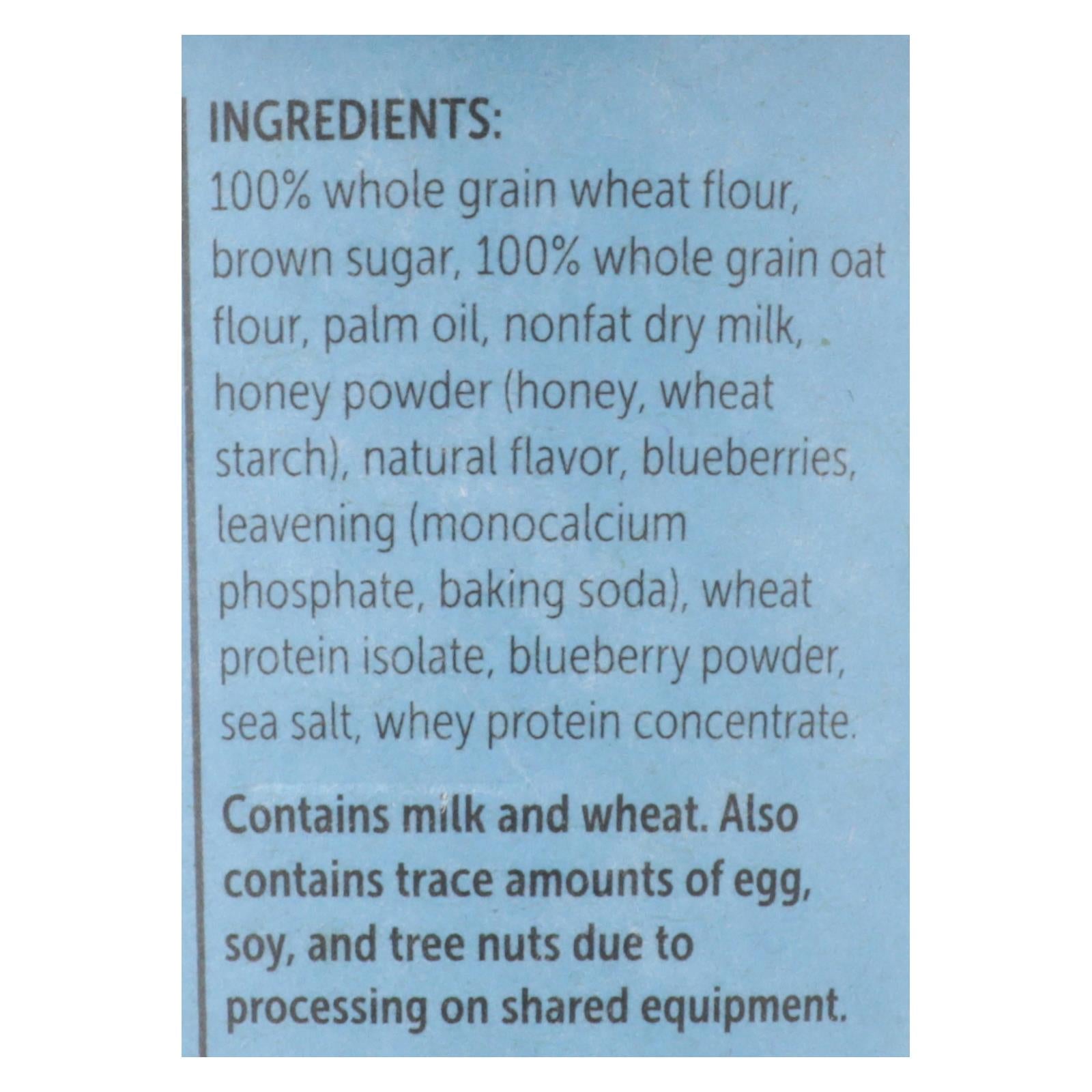 ingredients : 100% whole grain wheat flour;brown sugar;100% whole grain oat flour;palm oil;nonfat dry milk;honey powder;honey;wheat starch;natural flavor;blueberries;leavening;monocalcium phosphate;baking soda;wheat protein isolate;blueberry powder;sea salt;whey protein concentrate
