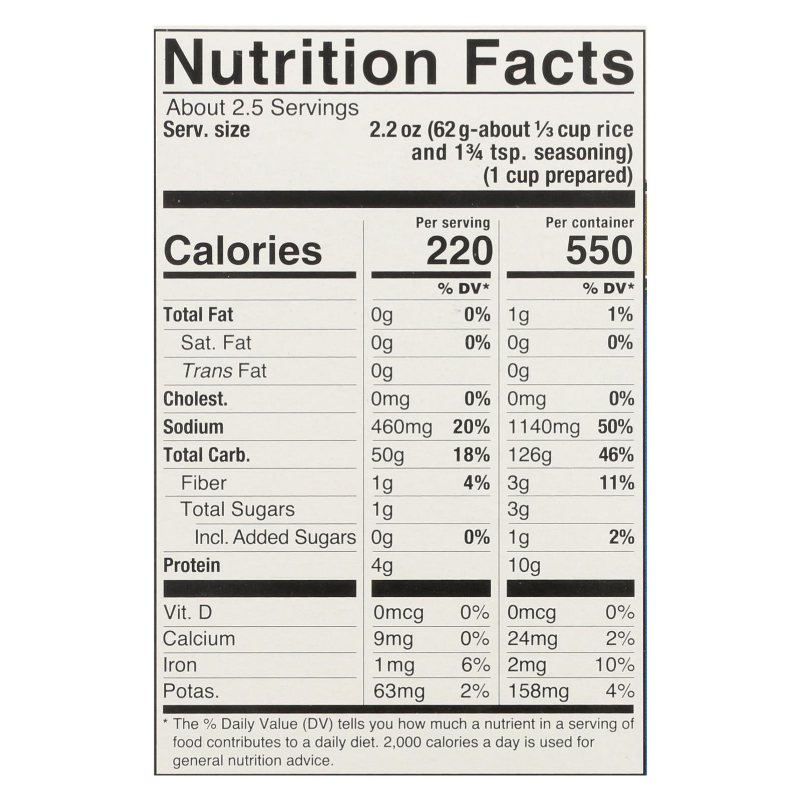 ingredients : parboiled white rice;seasoning;garlic;sea salt;brown rice flour;onion;cane sugar;spices [*black pepper;parsley];rice concentrate;extra virgin olive oil