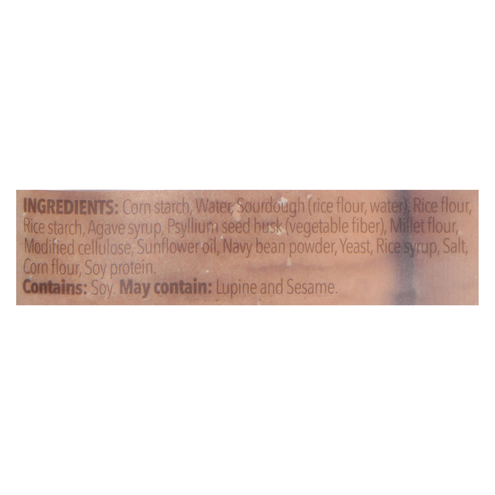 ingredients : corn starch;water;sourdough (rice flour, water);rice flour;rice starch;agave syrup;psyllium seed husk (vegetable fiber);millet flour;modified cellulose;sunflower oil;navy bean powder;yeast;rice syrup;salt;corn flour;soy protein
