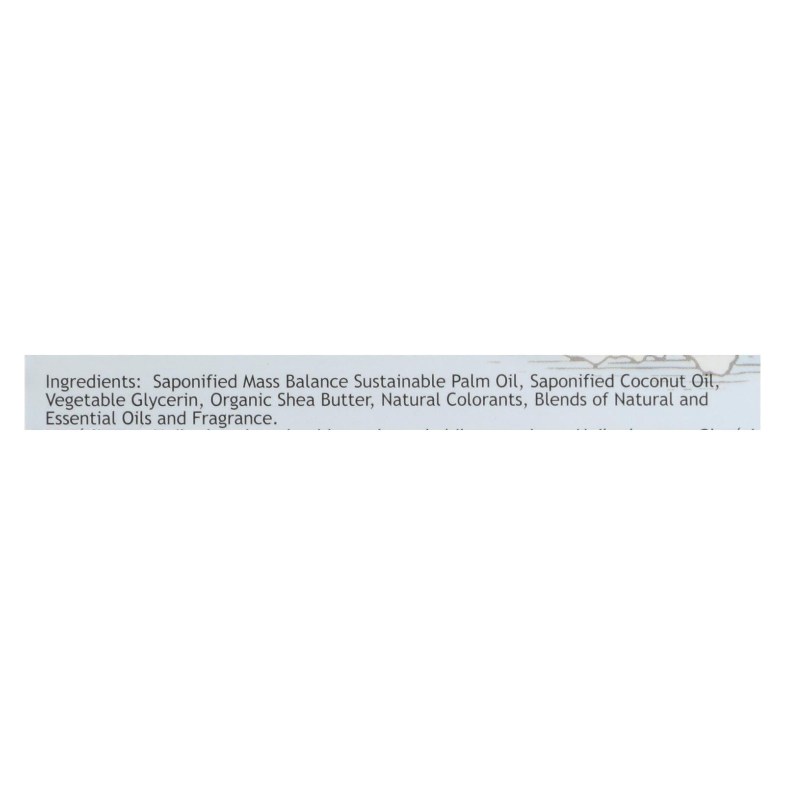 ingredients : saponified mass balance sustainable palm oil;saponified coconut oil;vegetable glycerin;organic shea butter;natural colorants;blends of natural and essential oils and fragrance